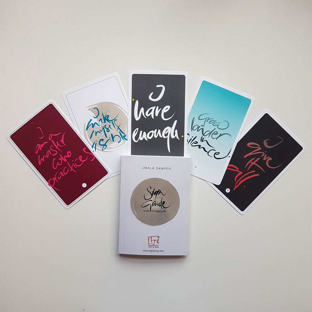 54 SignKarten in englischer Sprache (Original Sign by Jwala®) + Buch "SignGuide" von Jwala Gamper