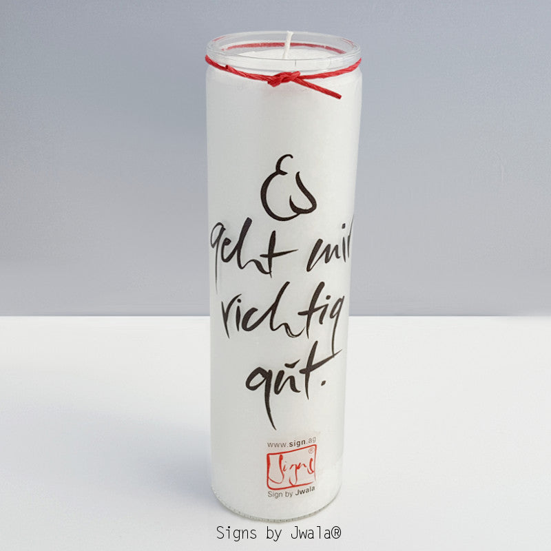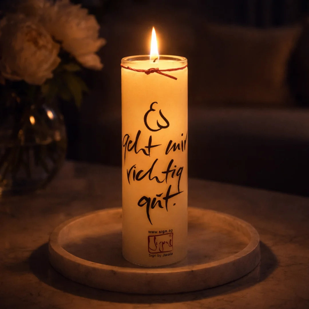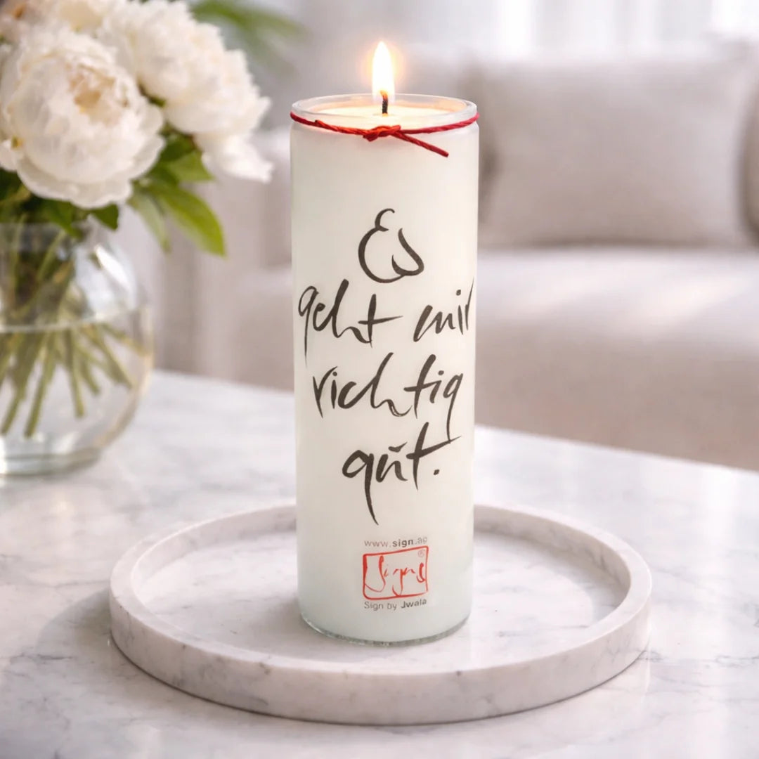 SignKerze Klassik „Es geht mir richtig gut“ – Nachhaltige Kerze mit inspirierender Botschaft und lange Brenndauer