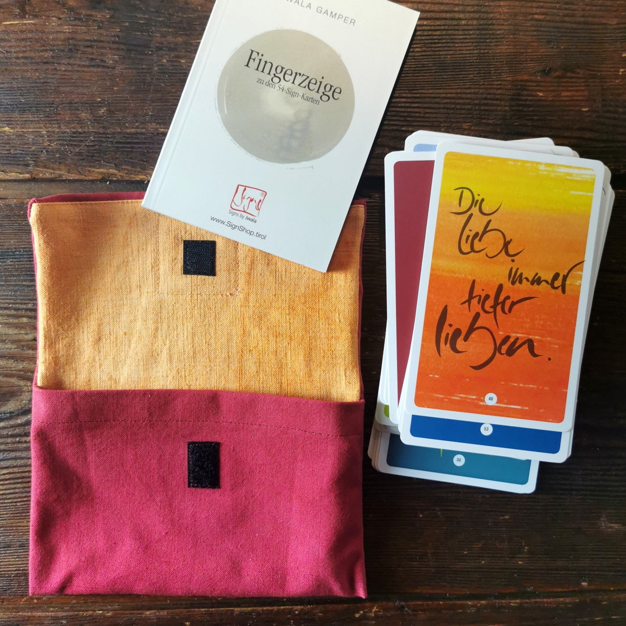 Die 54 Sign-Karten mit dem Buch "Fingerzeige" von Jwala Gamper sind ein Erfolgsfächer für ein gut gelebtes Leben.
