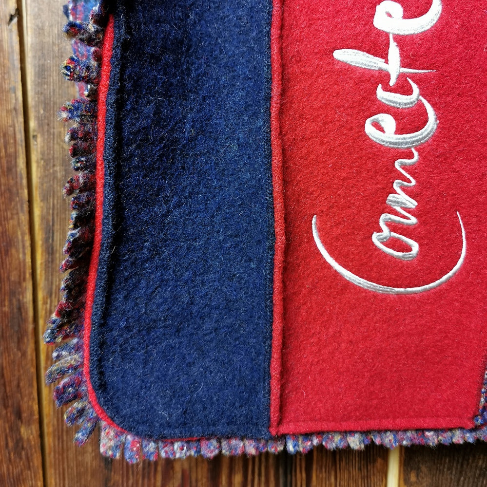 Blau-Rot, Karo-Muster, edle Fransen, bestickt mit Sign by Jwala® „Connected“ in Silber