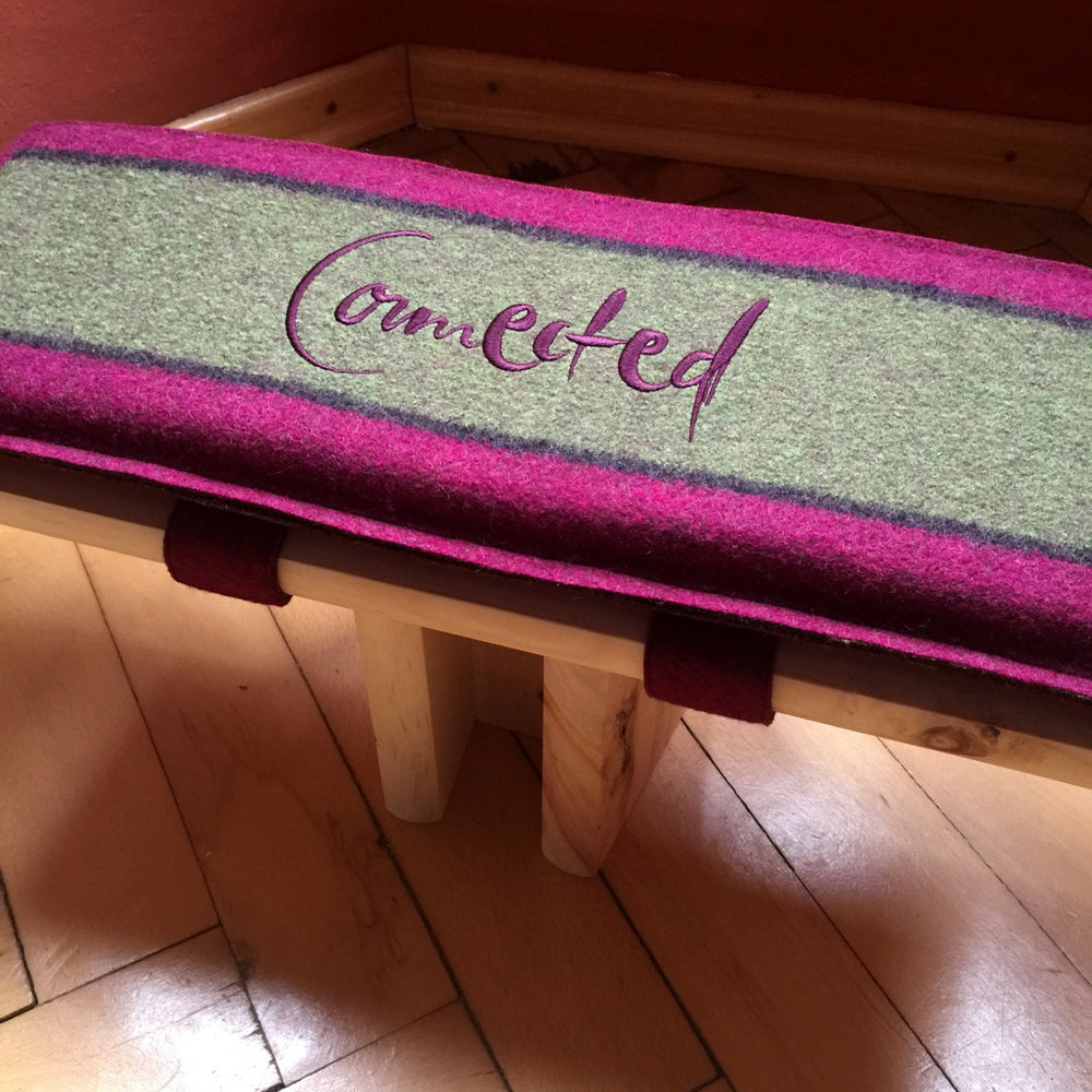 Info zu den Kissen: Die Kissen sind aus dem bewährten Walk (100 % Wolle) genäht, mit dem Sign "Connected" bestickt und mit festem Schaumstoff befüllt. Sie werden an der Unterseite des Hockers mit Klettverschlüssen befestigt. Bitte die Kissen chemisch reinigen.