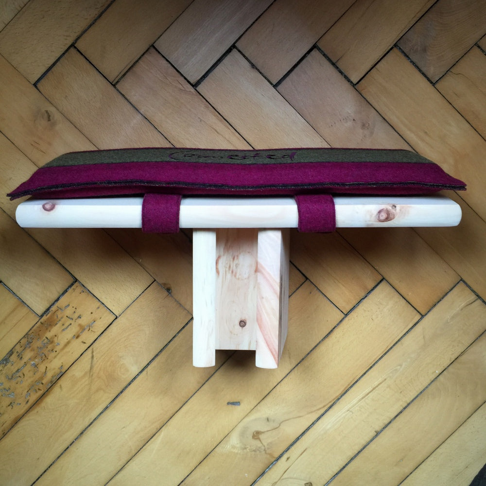 Handgefertigter Meditationshocker aus Zirbenholz mit besticktem Wollkissen – Natürlich meditieren und entspannen aus Tirol