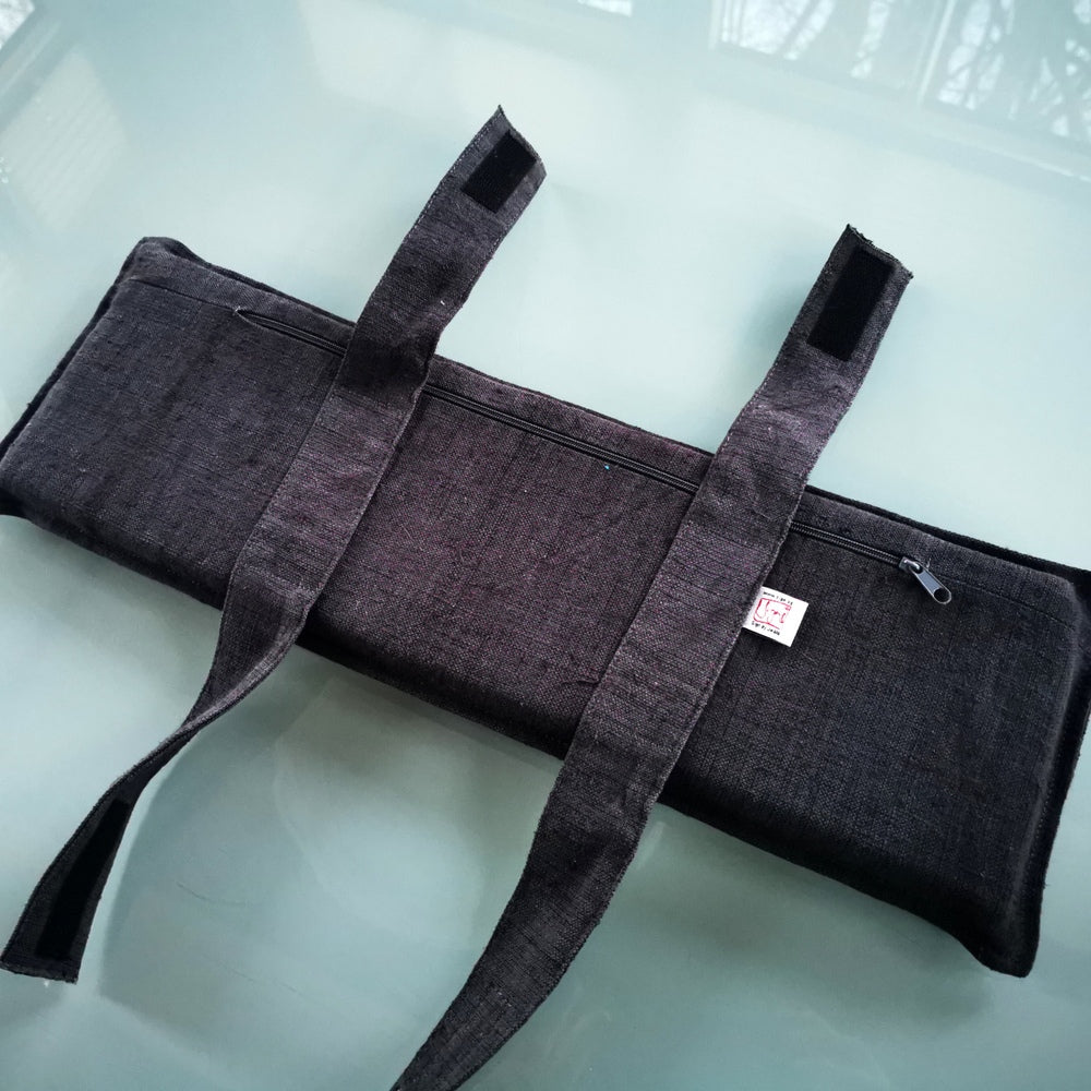Die ergonomisch geneigte Sitzfläche passt sich deiner natürlichen Haltung im Fersensitz an und sorgt gemeinsam mit dem passenden Meditationskissen aus handgewebtem, selbstgefärbtem Bauernleinen für druckfreies, bequemes Sitzen – auch über längere Zeiträume. Das Kissen ist aufwendig bestickt, mit festem Schaumstoff gefüllt und lässt sich per Klettverschluss sicher am Hocker befestigen. Die Bezüge sind pflegeleicht, maschinenwaschbar bei 40 Grad und können heiß gebügelt werden.