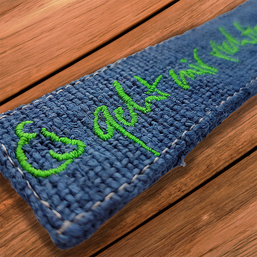 Ein Schlüsselerlebnis für jeden Tag: Dieser handgefertigte Schlüsselanhänger aus grobem, jeansblauem Bauernleinen bringt das kraftvolle Sign „Es geht mir richtig gut“ in dein Leben. Die grüne Stickerei harmoniert wunderbar mit der charaktervollen Leinenstruktur und macht dieses Accessoire zum inspirierenden Begleiter – ob als Schlüsselanhänger, Taschenbaumler oder Glücksbringer.