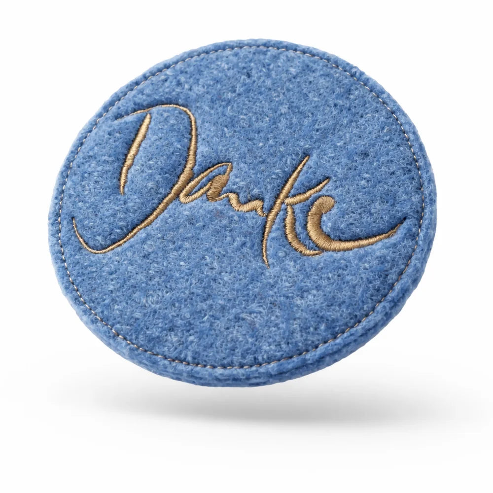 Unsere Glasuntersetzer„Danke“sind feine Sign-Seelenstücke – gefertigt aus 100 % Wollwalk von Giesswein/Tirol, in hellem Blau und liebevoll bestickt mit dem Sign „Danke“ (Sign by Jwala®).