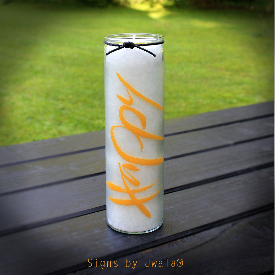 SignKerze „Happy“ – Nachhaltige Kerze im Glas mit inspirierender Botschaft mit 100 Stunden Brenndauer