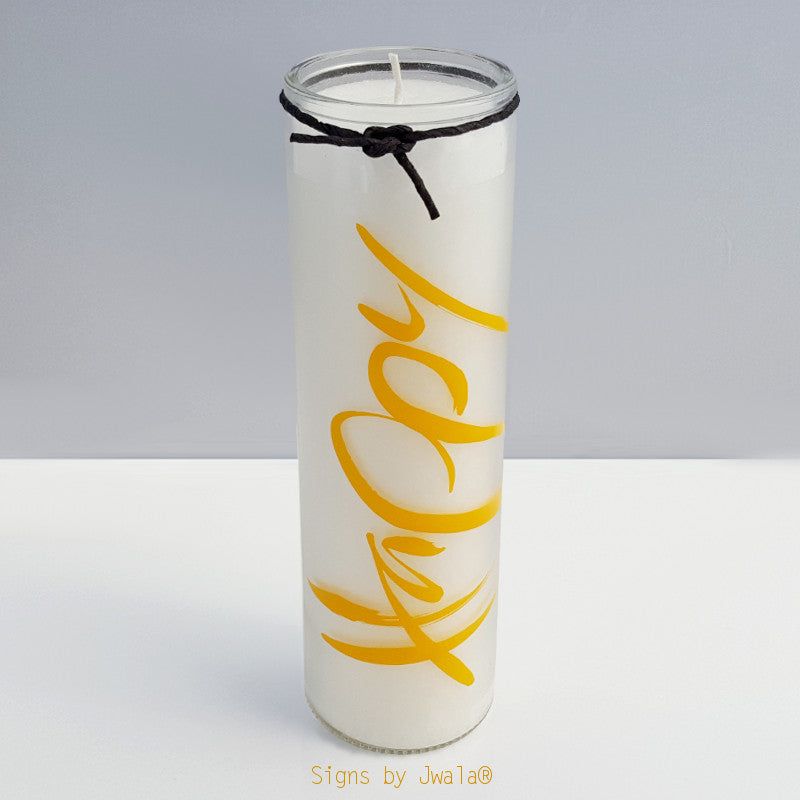 Mit dem leuchtend gelben „Happy“-Sign bringt diese Kerze genau das – ein strahlendes Licht, das uns an die Leichtigkeit des Seins erinnert und uns dabei unterstützt, in den Moment einzutauchen. Glückseligkeit kann so einfach sein, wenn wir uns dafür öffnen.