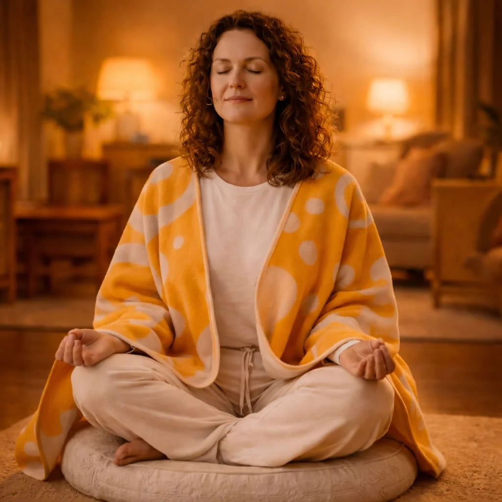 Ob als spiritueller Poncho für Yoga, als kuschelige Decke für Zuhause oder als besonderes Geschenk – diese Poncho-Decke bringt Achtsamkeit, Stil und positive Energie in dein Leben. Gefertigt in Österreich nach höchsten ökologischen und sozialen Standards, steht sie für nachhaltige Qualität und echte Handwerkskunst.