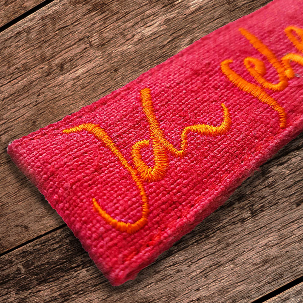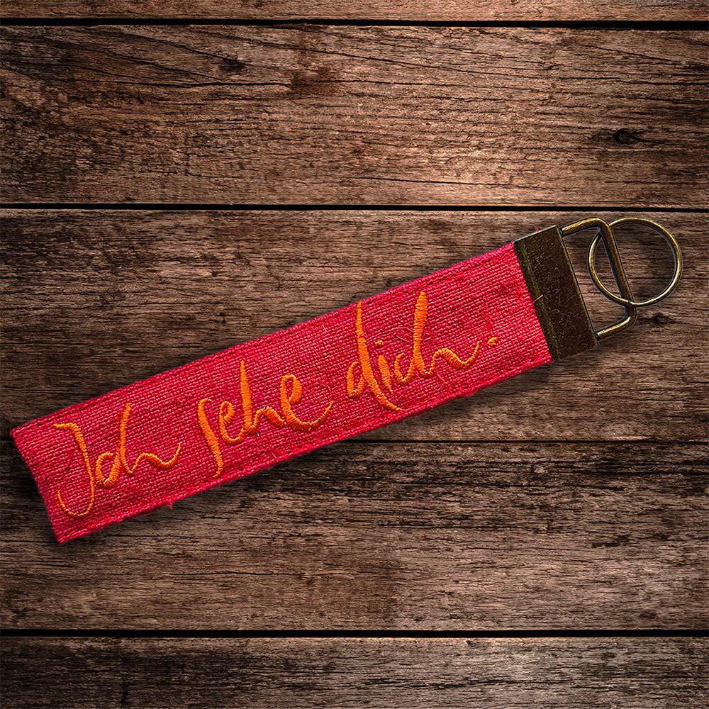 Mit dem Sign "Ich sehe dich" begleitet dich dieser Schlüsselanhänger durch den Alltag – ein Symbol für Achtsamkeit und Nähe, das sich perfekt als Schlüsselbund oder stilvoller Taschenbaumler eignet. Gefertigt aus antikem, handgewebtem Bauernleinen in kräftigem Pink und versehen mit leuchtender Stickerei in Orange.