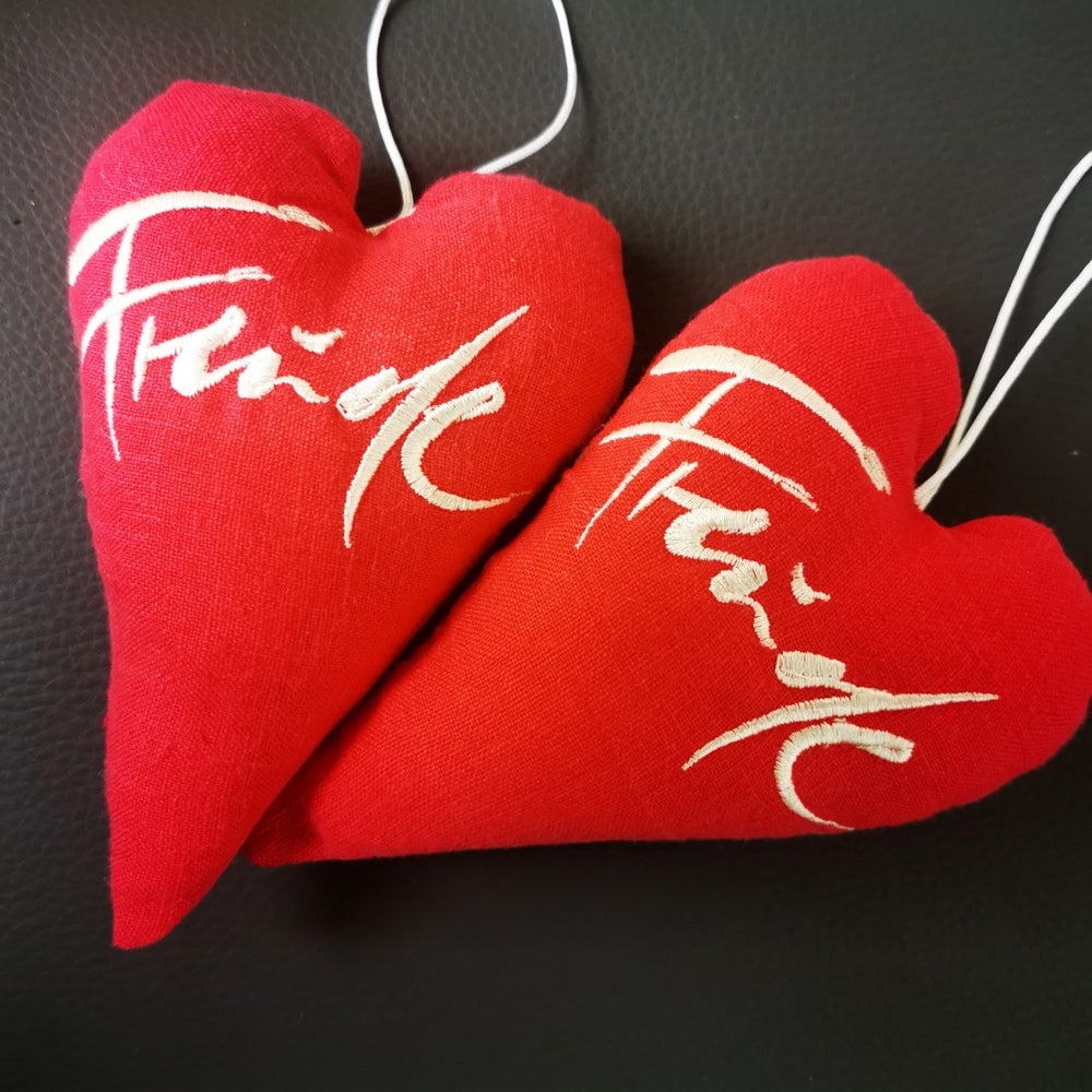 Dekorationsherz „Freude“ – Handgefertigtes Herz aus Leinen & Bauernleinen