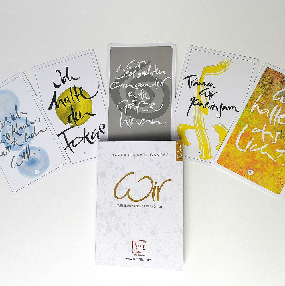 | Inhalt: | 54 WIR-Karten (Original Signs by Jwala®) + Buch "WIR" von Jwala und Karl Gamper + WIR-Tasche aus besticktem Bauernleinen (mit Magnetverschluss) |