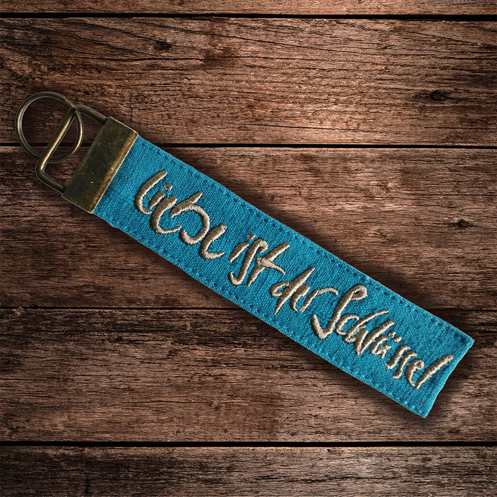 Der „Freude“-Poncho schenkt ihr Geborgenheit und Wärme, während das „Fingerzeige“-Kartenset in der handgefertigten Bauernleinentasche ihr Klarheit und tiefgehende Einsichten bringt. Der „Liebe ist der Schlüssel“-Schlüsselanhänger aus besticktem Bauernleinen erinnert sie daran, dass die Liebe die größte Kraft ist, die uns öffnet und verbindet.