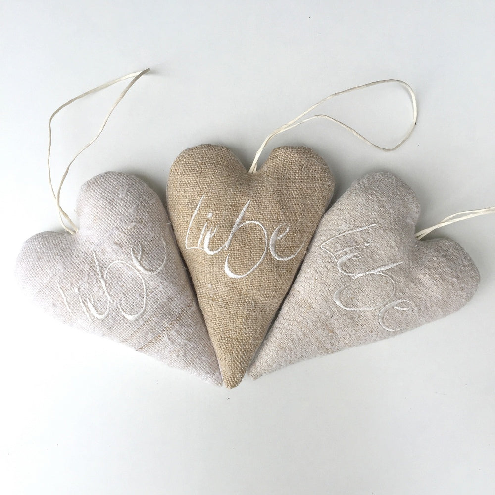 Entdecke ein Stück Tiroler Handwerkskunst für dein Zuhause: Dieses handgemachte Herz aus edlem, antikem Bauernleinen ist ein echtes Unikat und bringt natürliche Wärme und liebevolle Atmosphäre in jeden Raum. Jedes Deko-Herz wird in Tirol von Hand genäht und mit dem inspirierenden Sign „Liebe“ (Sign by Jwala®) in Creme bestickt – ein besonderes Detail, das Herz und Seele anspricht.