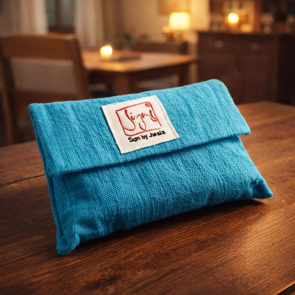 | Farbe: | "Türkis" (Bauernleinenhülle selbstgefärbt), "Türkis" (Baumwollfutter selbstgefärbt) |