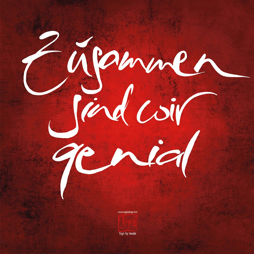 | Sign: | "Zusammen sind wir genial" (Sign by Jwala®) |