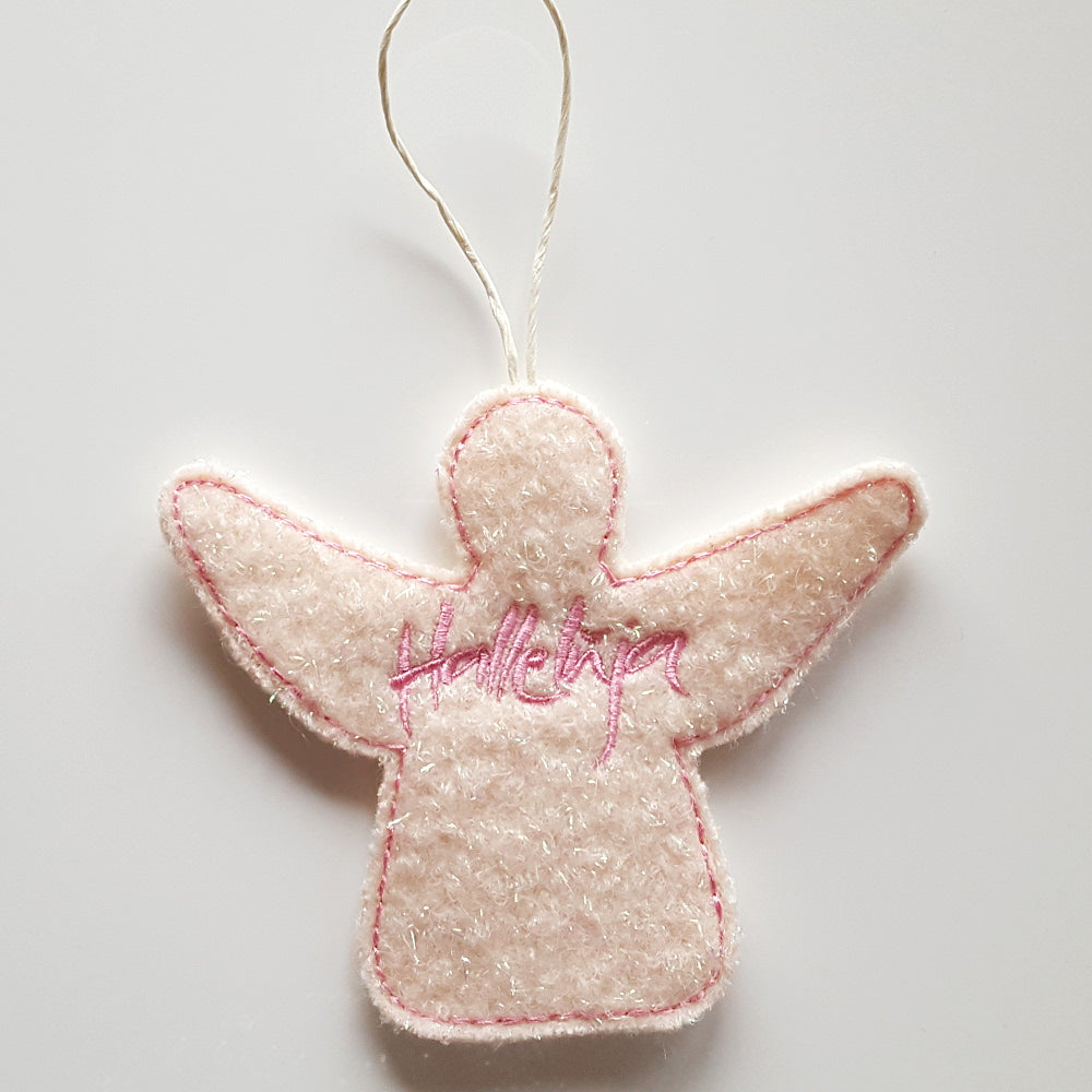 Bringe festlichen Zauber und liebevolle Handwerkskunst in dein Zuhause: Unser handgemachter Engel-Anhänger ist die perfekte Weihnachtsdekoration für alle, die das Besondere suchen. Jeder Engel wird aus 100 % Wollwalk von Giesswein/Tirol von Hand geschnitten, liebevoll genäht und mit dem Sign „Halleluja“ (Sign by Jwala®) in zartem Rosa bestickt.