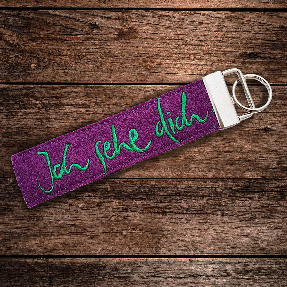 Dieser edle Schlüsselanhänger trägt das kraftvolle Sign „Ich sehe dich“ und ist aus weichem Wollwalk von Giesswein gefertigt. Die Farbgestaltung aus Purple und Dunkelblau korrespondiert harmonisch mit der grünen Stickerei – eine dezente, aber ausdrucksstarke Kombination, die stilvoll die Kraft des Gesehenwerdens vermittelt. Perfekt auch als Taschenbaumler und steter Begleiter, der sanft an Wertschätzung und Nähe erinnert.