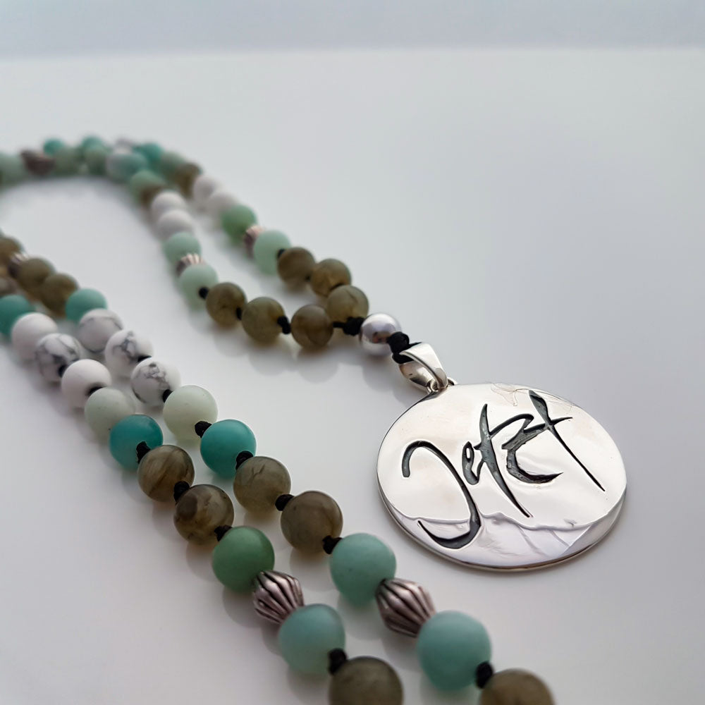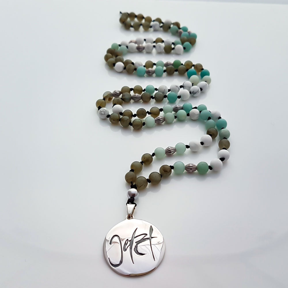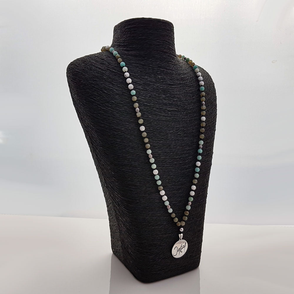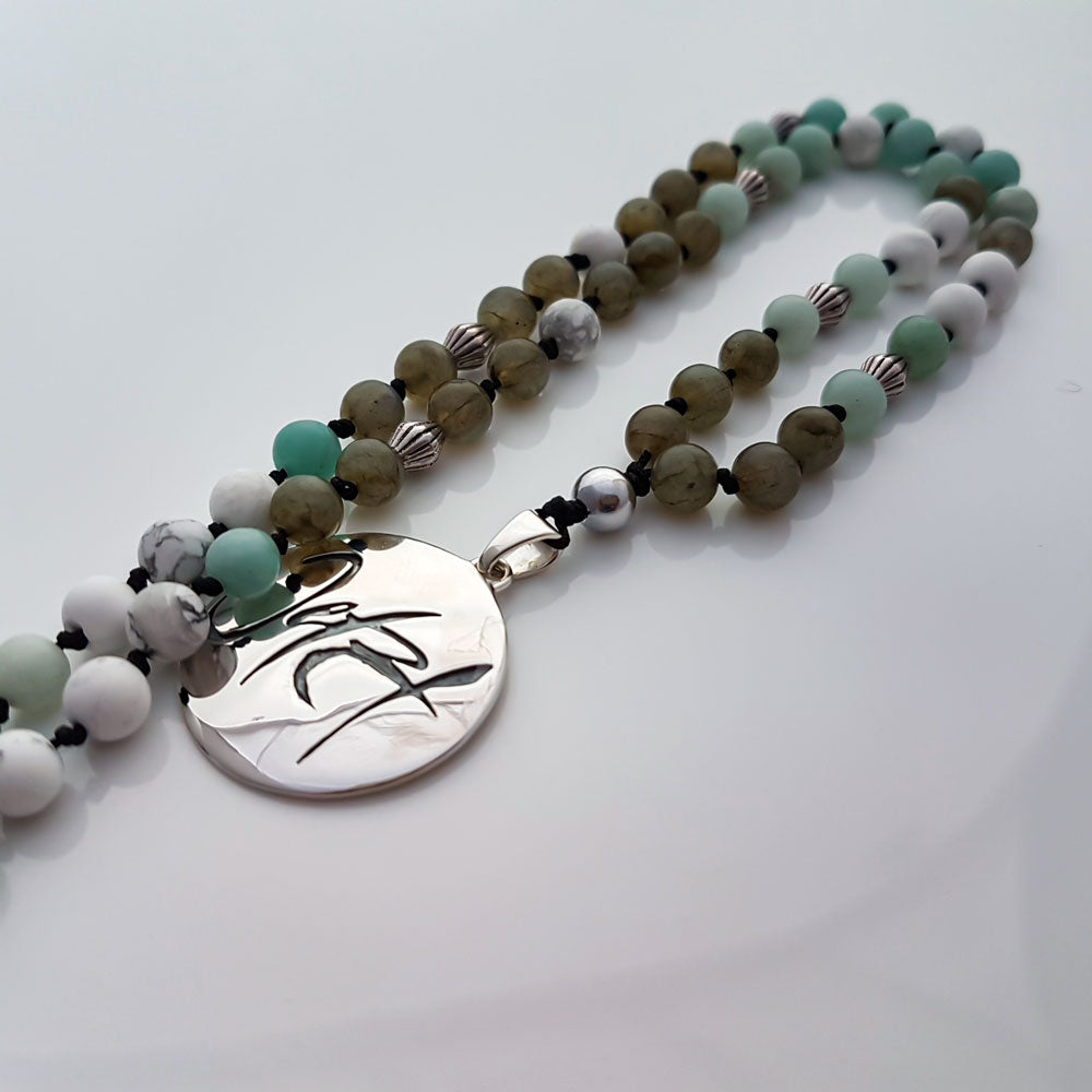 • Perlen: 108 Halbedelsteinperlen aus Howlith, Amazonit, Labradorit