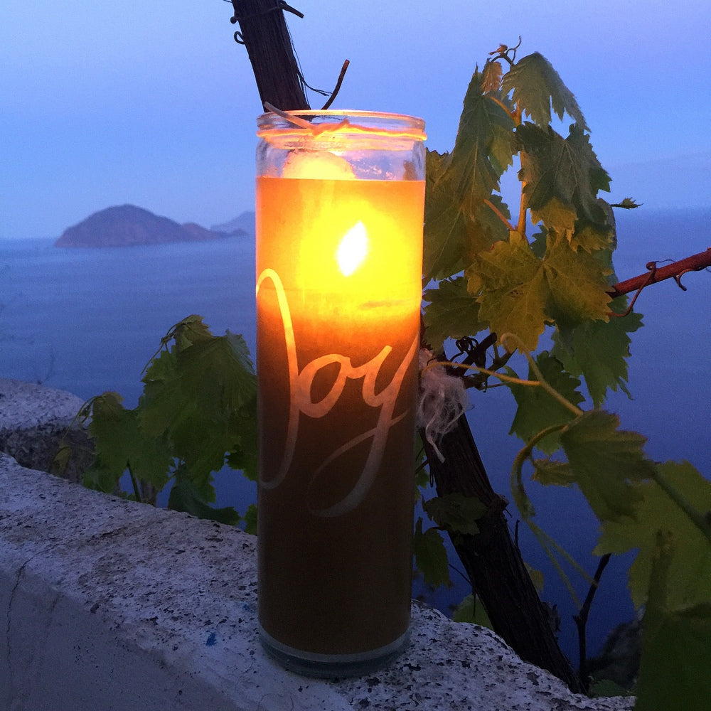 SignKerze „Joy“ – Nachhaltige Kerze mit inspirierender Botschaft und 100 Stunden Brenndauer