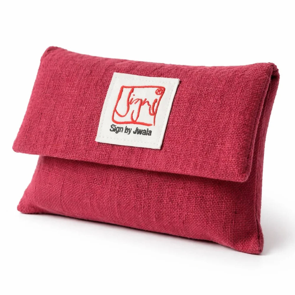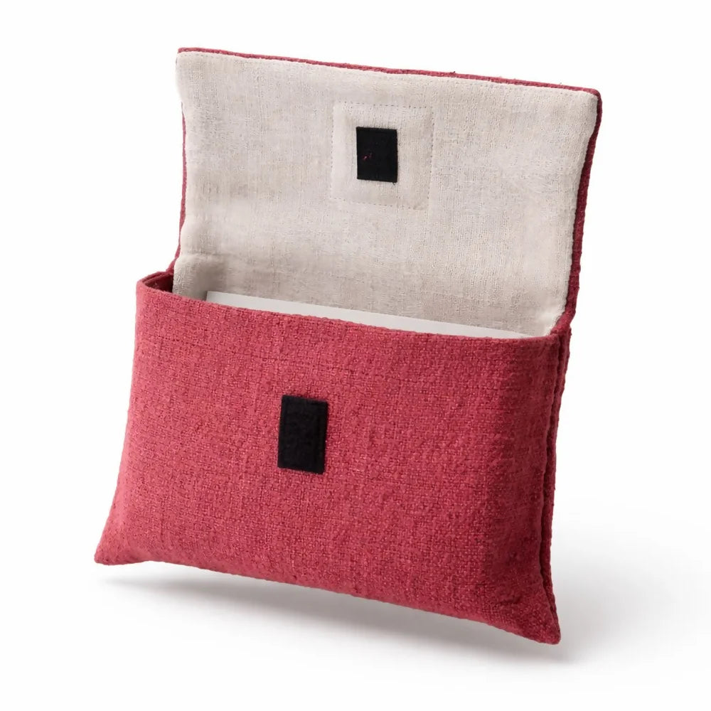 Farbe "Rosenholz" (Bauernleinenhülle), "Zartrosa" (Baumwollfutter) – beides handgefärbt