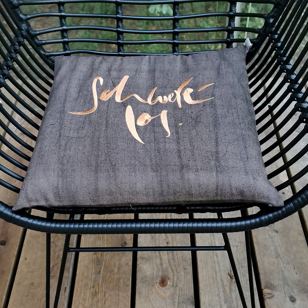 Exklusives Zierkissen aus Vintage-Bauernleinen – handbestickt mit „Schwerelos“
