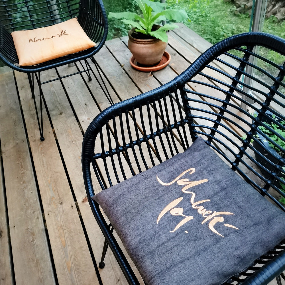 Unsere flachen SignKissen eignen sich ideal als Sitzkissen für Meditation auf dem Boden, als ergonomische Sitzunterlage im Büro oder Homeoffice, als bequemes Kissen für lange Autofahrten, als stilvolles Sitzkissen für den Esstisch oder als dekoratives Gartenbank-Kissen. Das nachhaltige Bauernleinen sorgt dabei für ein angenehmes Sitzgefühl und bringt einen Hauch von Boho-Charme in dein Zuhause.
