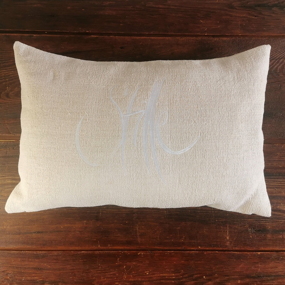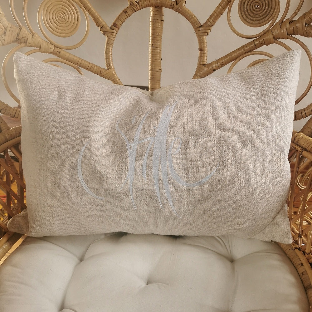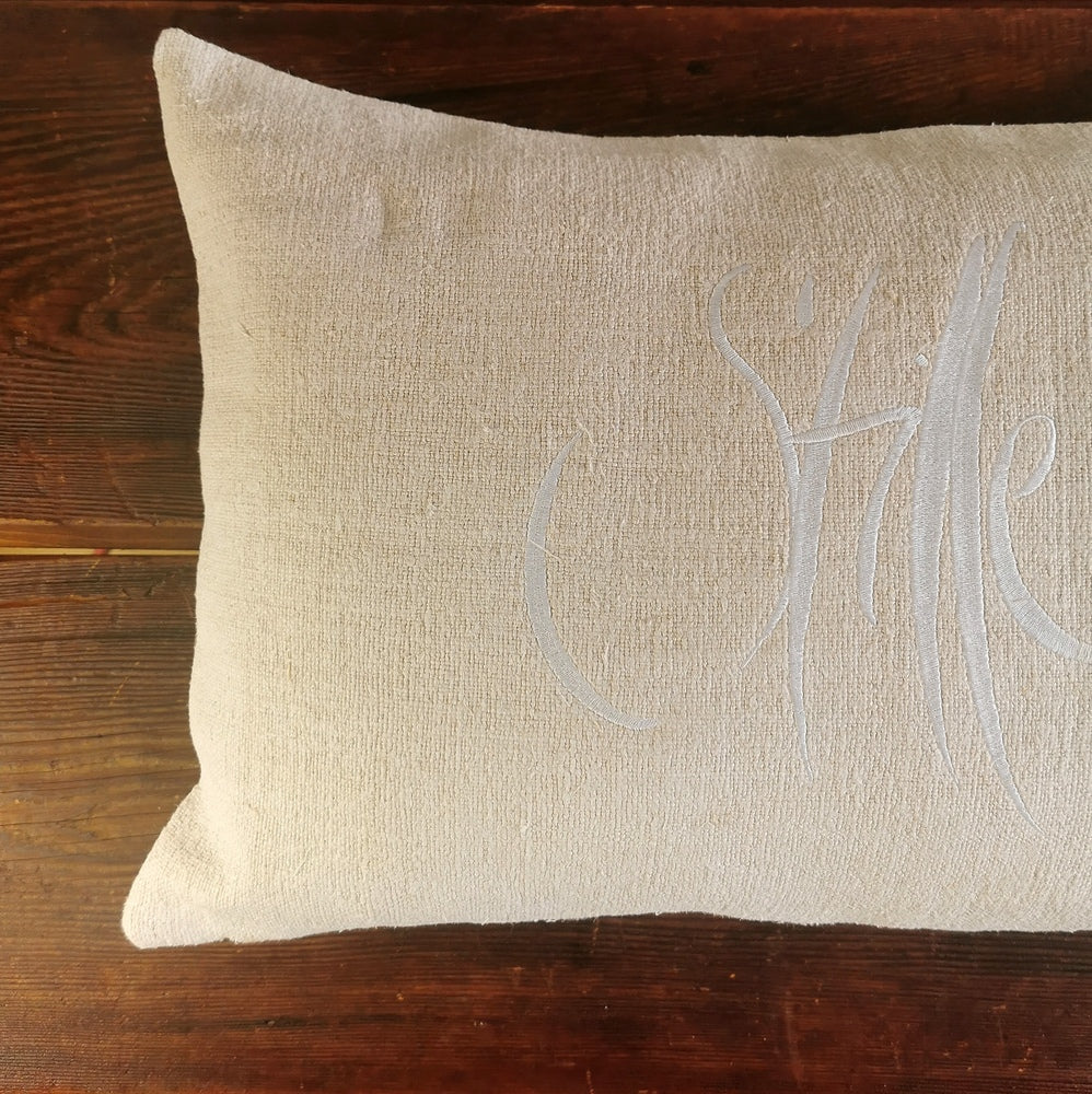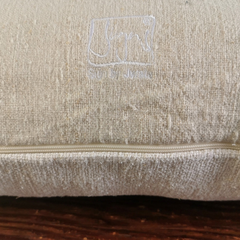 Kissenhülle „Stille“ – Handgewebtes Unikat aus antikem Bauernleinen in beige