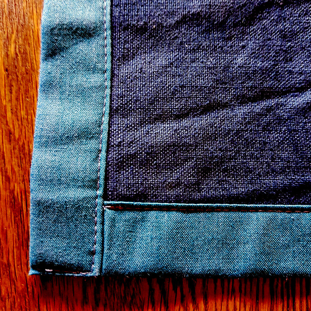 Jeansblau (Mittelteil handgefärbt), Petrol (Einfassung handgefärbt)
