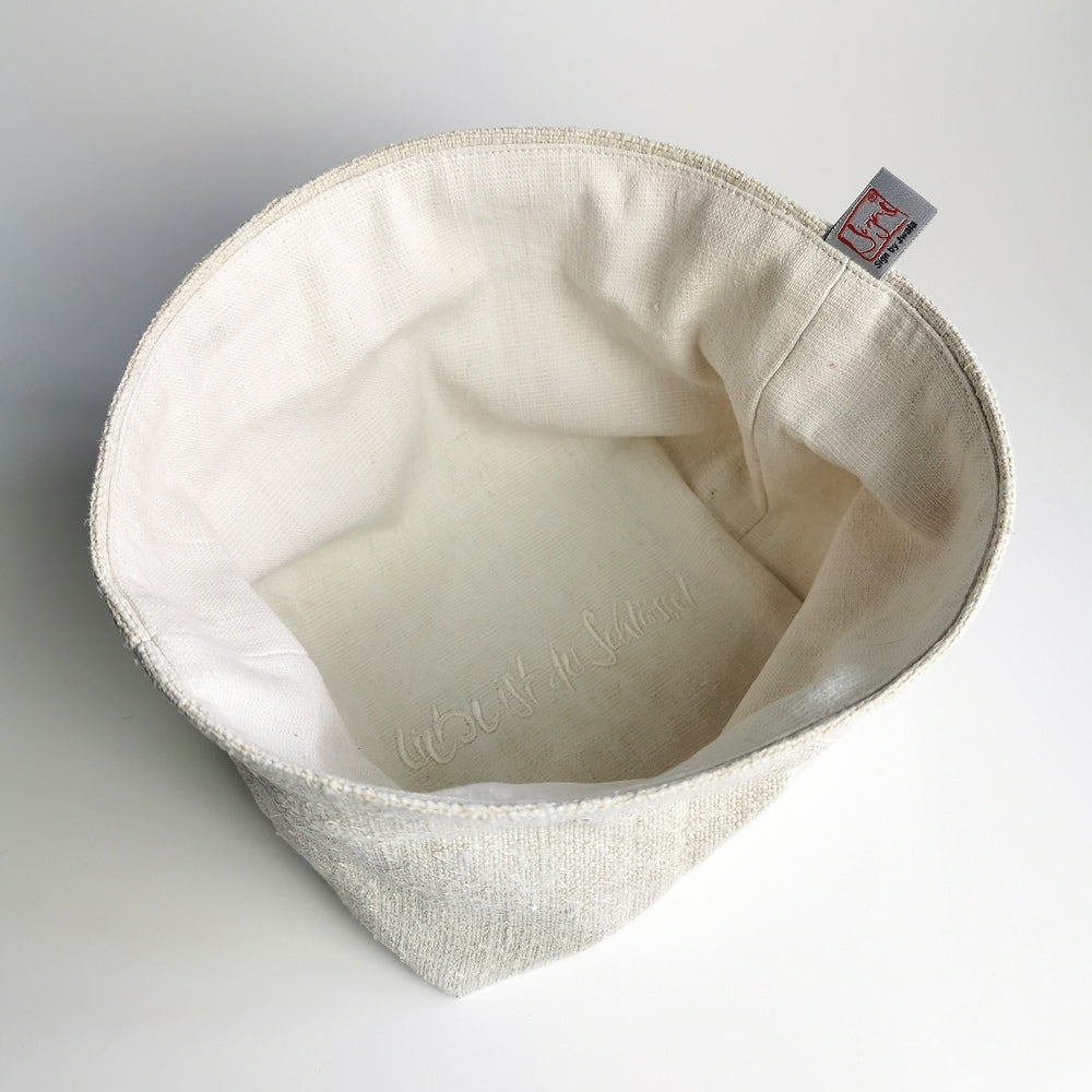 Ideal für alle, die auf der Suche nach einem besonderen Brotkorb aus Leinen mit inspirierender Botschaft sind und Wert auf Handarbeit, Nachhaltigkeit und einzigartige Details legen.