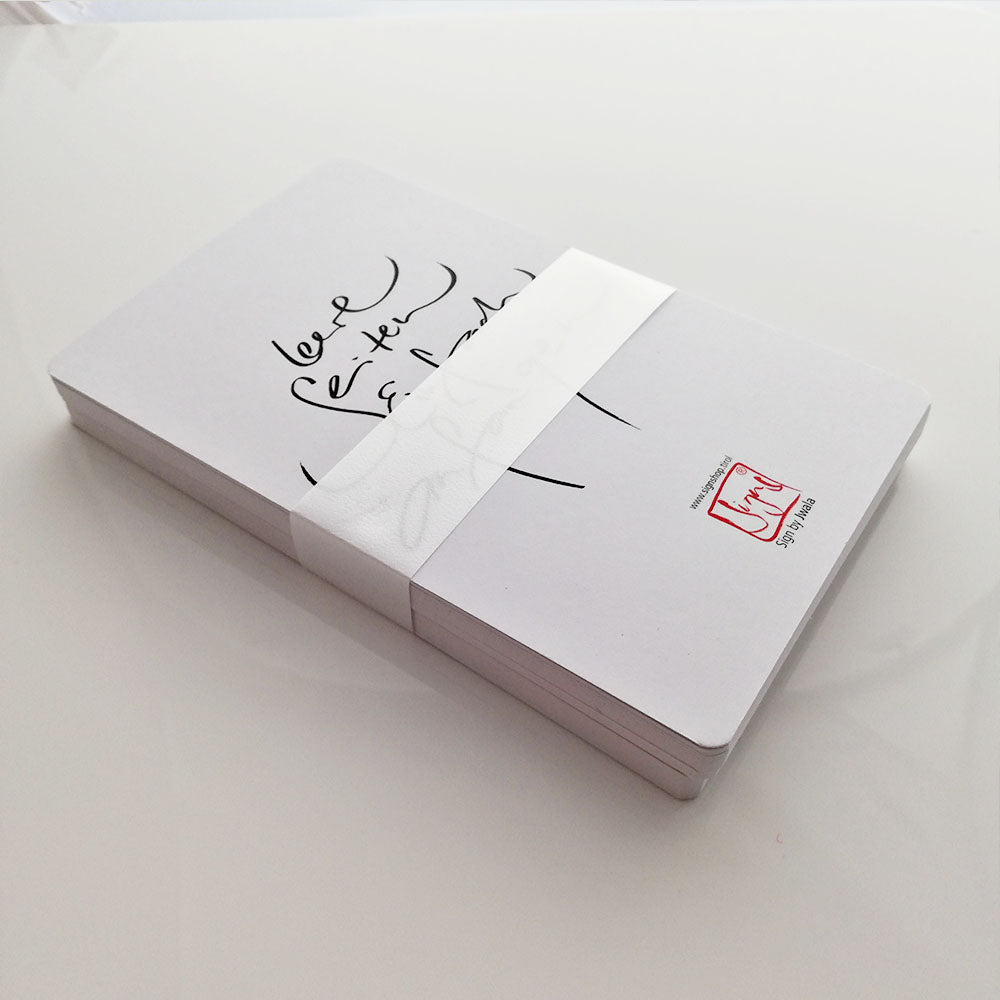 "Leere Seiten, einfach anfangen" Sign by Jwala® mit Anleitung auf der Rückseite